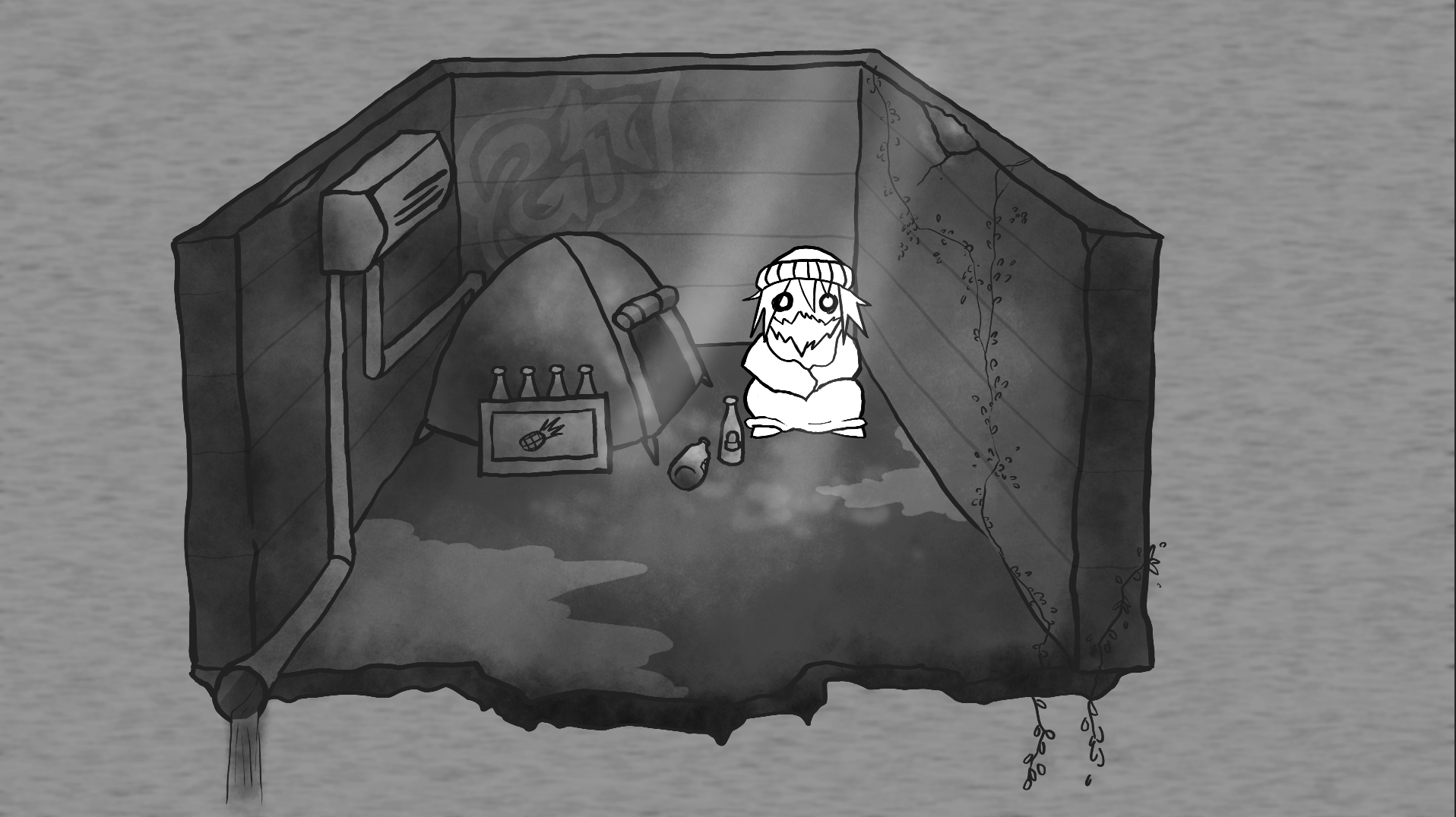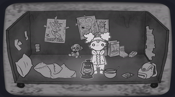 Residuum: A Dark Puzzler RPG taking place in a post-rapture world, where the partially missing human population has been taken over by Other species. Our main character is Weka, a young girl who lives alone in a dumpster, reworked into a cozy room!